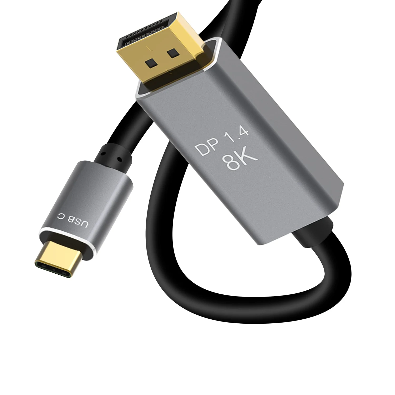 - A compact adapter that converts USB Type-C output to DisplayPort, enabling connection to high-resolution DP monitors and displays.